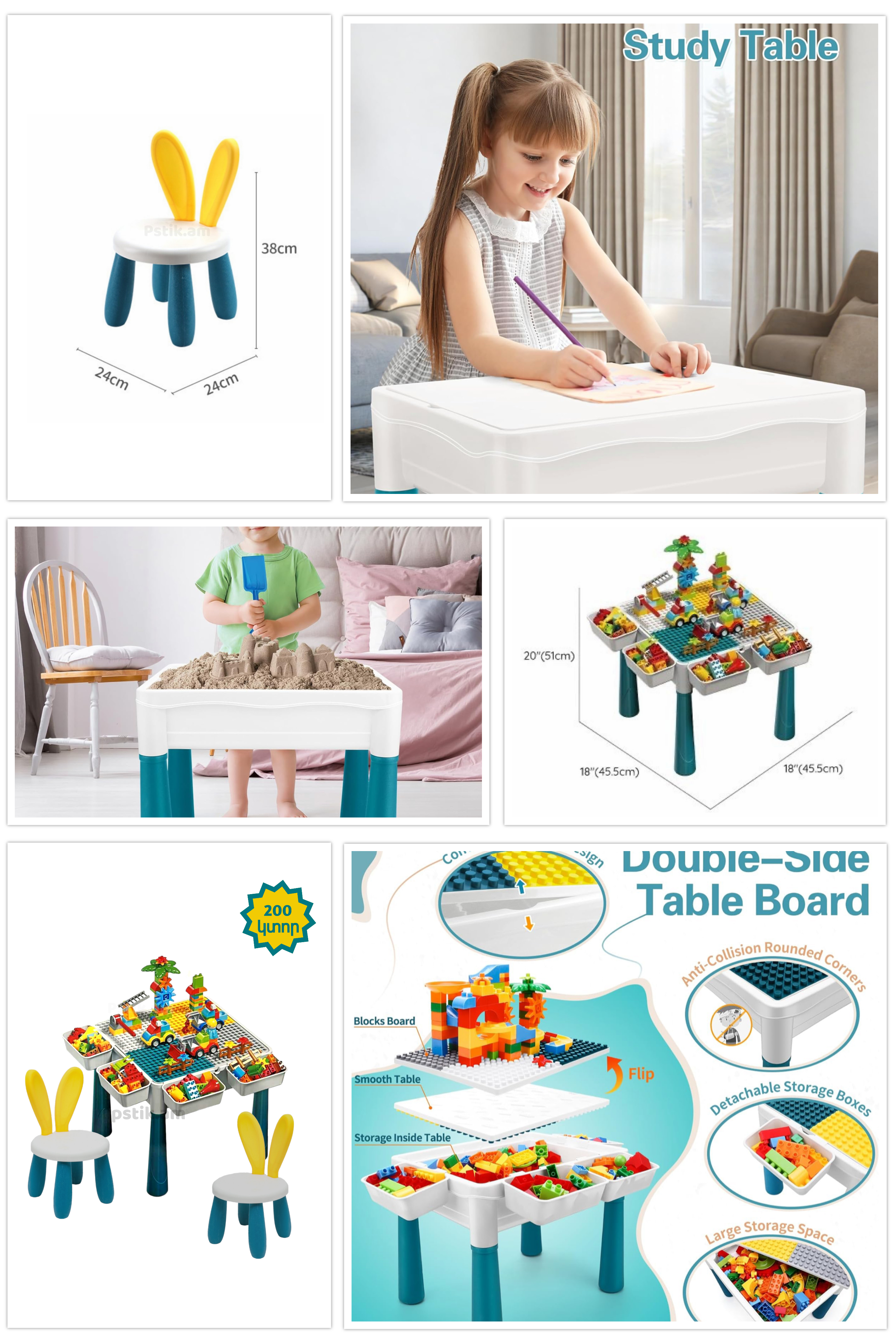 5-ը 1-ում բազմաֆունկցիոնալ լեգոյի սեղան 2 աթոռով